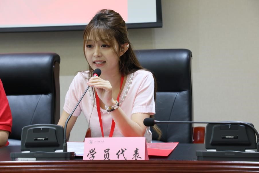 来自阿坝州茂县八一中学的尤欢老师作为学员代表发言,她代表50名教师向各级教育主管部门、四川师大表达衷心感谢,称此次培训是“一场及时雨”,为扎根民族地区基础教育、面临教育理念更新与教学能力提升挑战的青年教师,提供了开阔视野、汲取养分的宝贵平台,体现了国家对民族地区教育的重视与对教师成长的关怀。尤欢表示,民族地区教育关系国家未来、民族希望与孩子成长梦想,作为青年教师,大家肩负着传承文化、启迪智慧、塑造灵魂的使命,四川师范大学深厚的学术积淀与优质资源,让大家对此次研修充满期待。她代表全体学员郑重表态:一是全心投入,迅速转变角色、遵守纪律,认真完成学习任务;二是虚心求教,珍惜向专家、导师与同行学习的机会;三是交流互鉴,在思想碰撞中共同成长;四是学以致用,将培训所学带回工作岗位,探索适合民族地区学生的教学路径,为提升当地教育质量贡献力量。